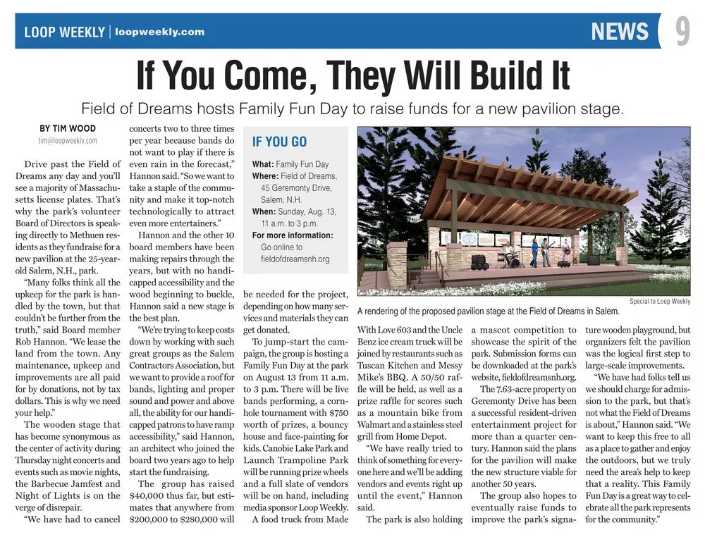 I recently spoke with LOOP Weekly about our Family Fun Day fundraising event and shared with them how the new pavilion is not only needed for bettering the park, but for the Greater Salem community.