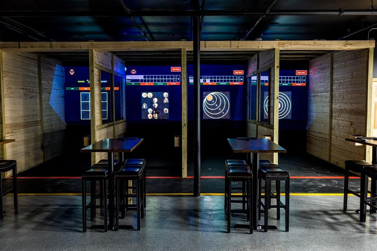 Unlike the many cookie-cutter axe throwing facilities that play heavily on a lumberjack-type feel, Par28 stands out with its modern and industrial style that seamlessly blends sport and social.