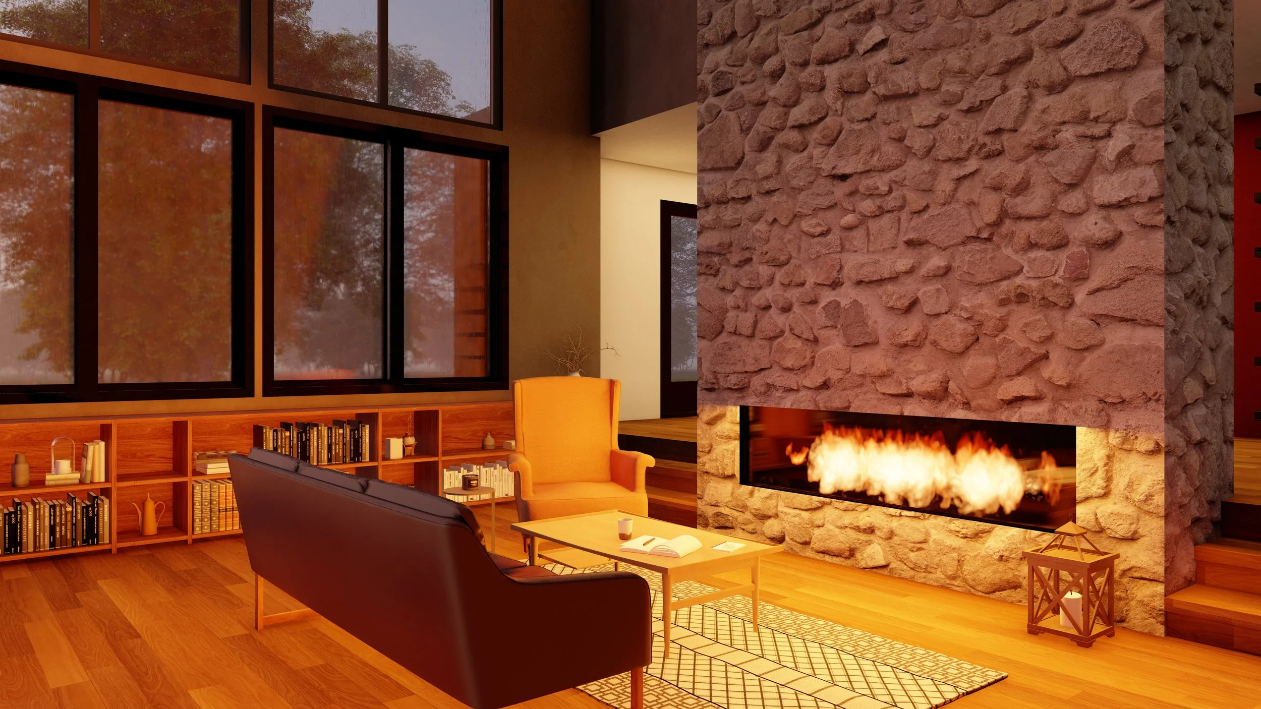 The wooded site risked limiting daylight. By studying sun patterns and tree coverage, RWH placed expansive glass strategically across both levels, ensuring each major living space is illuminated throughout the day.
